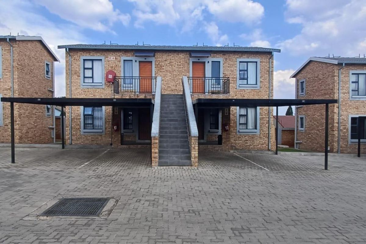 Starter apartment steps from Witpoortjie Shopping and Marcel Walk Village, ideal for easy living with open-plan kitchen, peaceful lounge, 24-hour security, one covered parking and visitor spot.