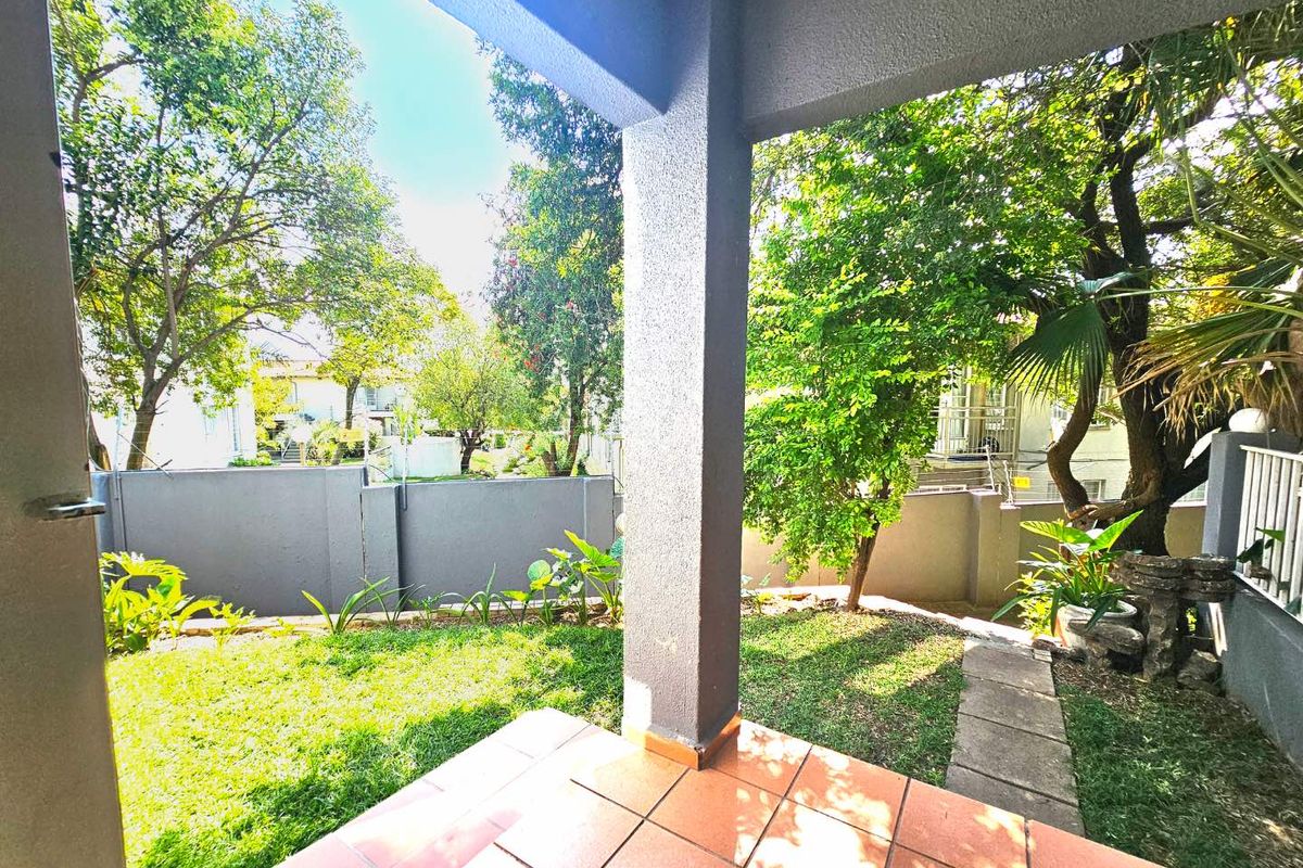 Low-maintenance Radiokop living with a private garden retreat and communal pool, plus a brand-new modern kitchen. Steps from shops and Wilgeheuwel Hospital. Two bedrooms, one bath, covered parking.