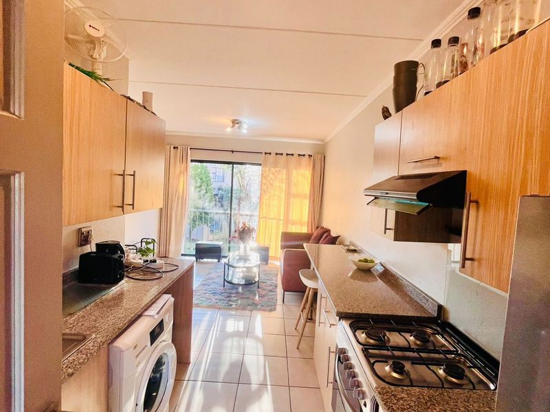 Effortless income and convenience near Lonehill and Dainfern: Airbnb-friendly Fourways apartment with high tenancy, communal pool, open-plan gas kitchen, one bedroom, one bath and parking.