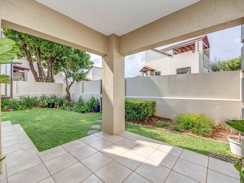 Active, convenient ground-floor living with easy access to Montecasino and Broadacres shopping; lounge opens to a private enclosed garden with no front neighbours. Two bedrooms, one bathroom, parking.