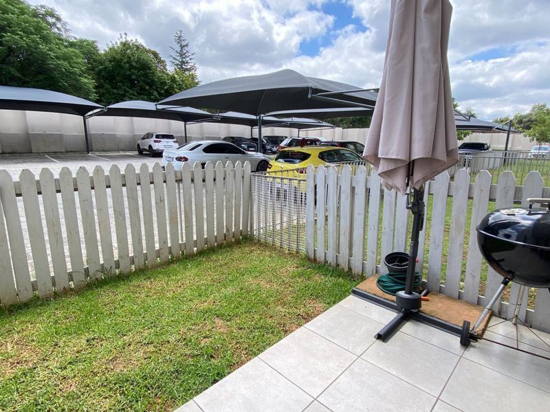 Effortless indoor-outdoor living in Fourways Precinct, moments from malls, top schools and Lanseria — ground-floor 2-bed, 1-bath apartment with private covered patio and garden.