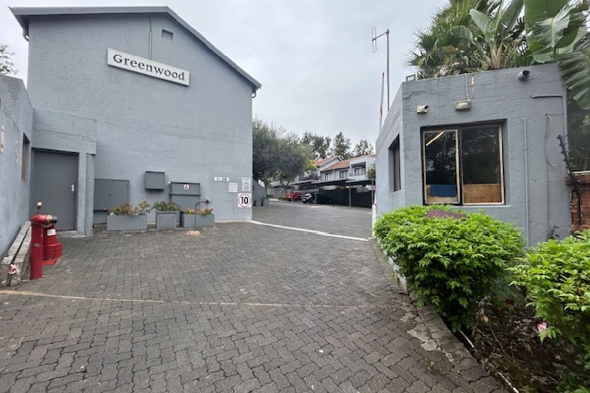 Family-focused living with open-plan flow onto a covered patio and private garden in Greenwood Complex, Johannesburg, close to Douglasdale and Bryanston. Three bedrooms, two bathrooms and parking.