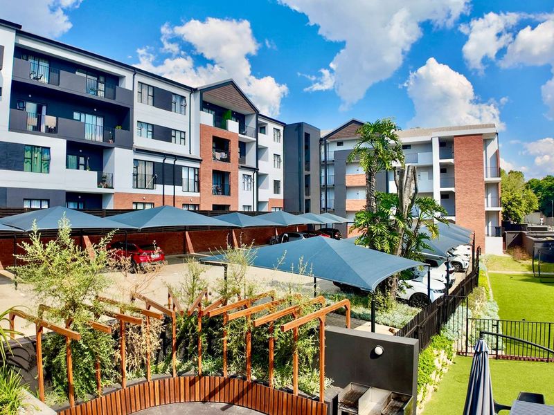 Active, eco-estate living in Amsterdam Eco-Estate, Olivedale — pool, gym and concierge with a balcony overlooking green views. Open-plan 1-bedroom, 1-bath home with granite kitchen and single carport.