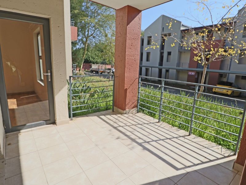 Live effortlessly in a top-floor Bryanston studio with sweeping views, open-plan modern kitchen and living, secure complex near Bryanston shopping centre and Gautrain bus route; one bed, one bath, covered parking.