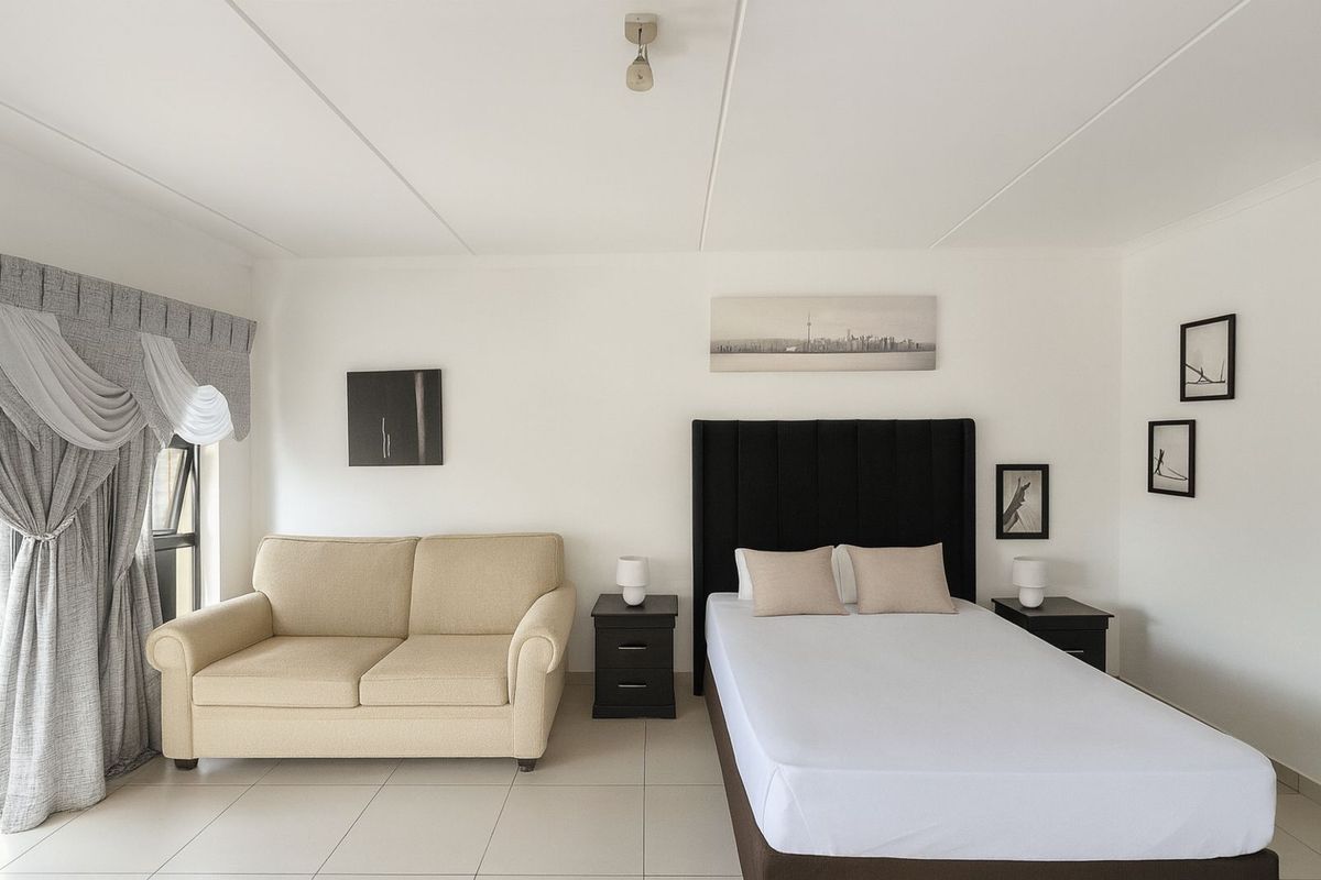 Effortless Dainfern living — bright lock-up-and-go studio with private balcony for morning coffee, modern kitchen and utility alcove in a secure complex, moments from Dainfern Square.