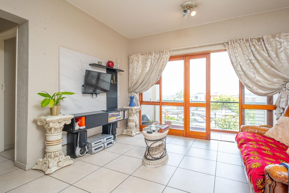 Relaxed, secure estate living in Douglasdale with central access to shops and schools; first-floor corner apartment featuring a private balcony, two bedrooms, two bathrooms, and carport.