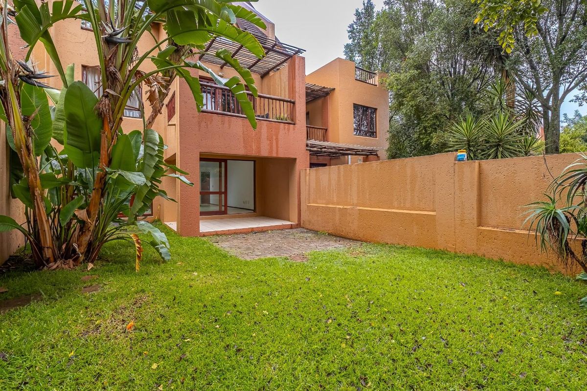 Enjoy lock-up-and-go estate living in Douglasdale with village cafés and easy Sandton access; one-bedroom unit opens to a covered patio and large private garden, pet-friendly.