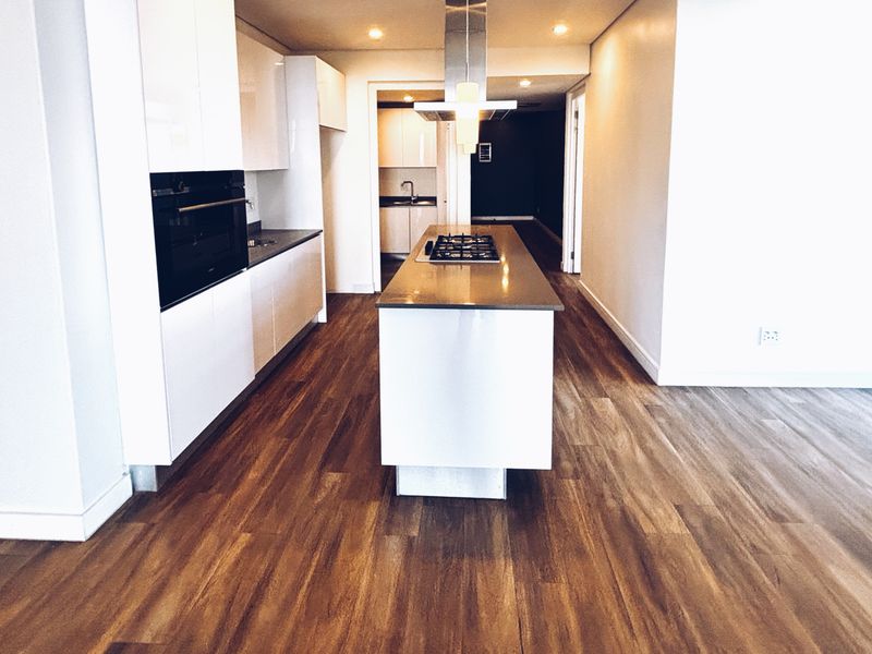 WFH-focused living with oversized entrance/office flowing to reception and patio with direct access to communal gardens and pool. Two beds, 1.5 baths, two parking; near Rosebank & Sandton.