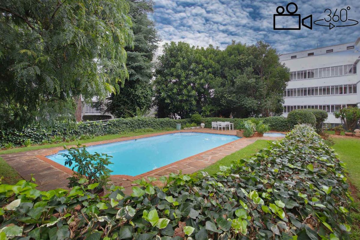 WFH-focused living with oversized entrance/office flowing to reception and patio with direct access to communal gardens and pool. Two beds, 1.5 baths, two parking; near Rosebank & Sandton.