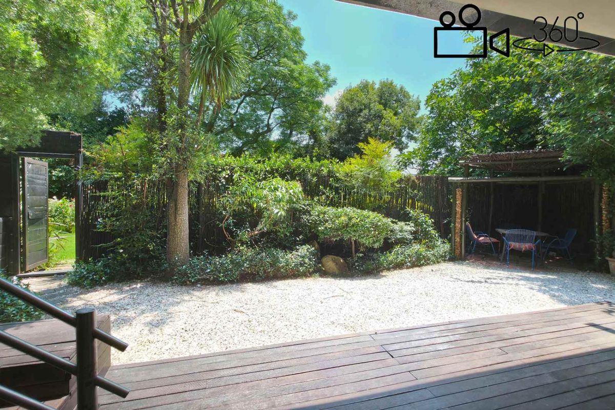 The main bedroom is en-suite and includes a luxurious steam shower, and enjoys serene garden views through sliding windows, blurring the lines between indoor and outdoor living,