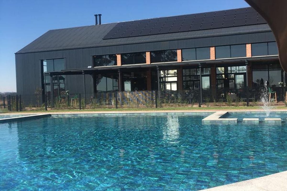 Relaxed Greenlee lifestyle estate living with on-site pool, gym and pizza bar; balcony apartment ideal for work-from-home, one bedroom and one bathroom, plus communal soccer field.