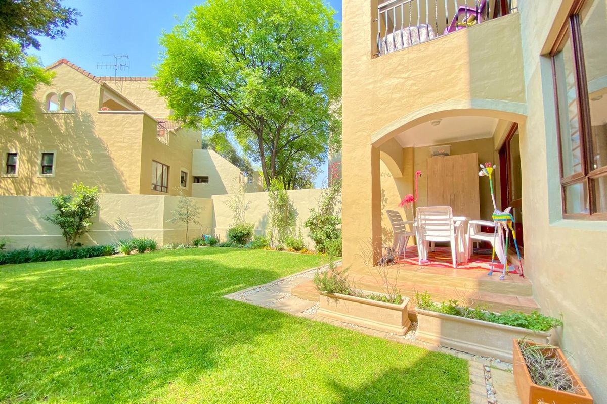 Relaxed, low-maintenance living in Morningside Village Estate, Sandton, with sunny open-plan flow onto a private covered patio and manicured garden; newly renovated one-bedroom, one-bathroom ground-floor unit.