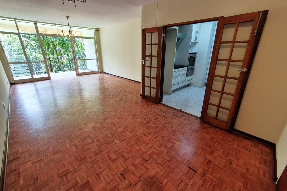 Urban convenience and relaxed garden living in the heart of Sandton, with a covered patio overlooking landscaped communal gardens; two bedrooms, two bathrooms, and two undercover parking bays.