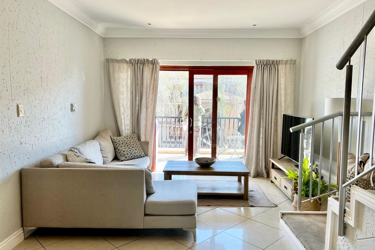 Enjoy secure, active urban living steps from Virgin Active and Morningside Shopping Centre; double-level apartment with private balconies, two en-suite bedrooms, guest loo and two tiled parking bays.