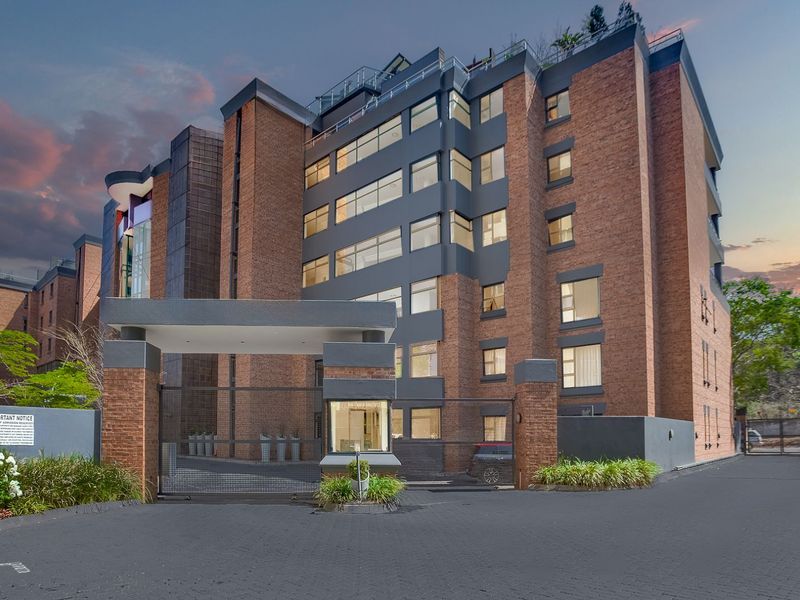 Executive lock-up-and-go living minutes from Sandton CBD and Benmore Centre, near corporate offices and top schools — Miele kitchen, private balcony, biometric lift; two bedrooms, 2.5 baths.