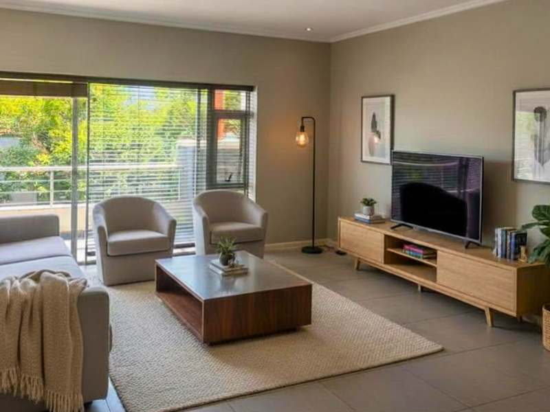 Enjoy indoor–outdoor living in Morningside, walking distance to Virgin Active and shops: open-plan lounge/dining to covered patio, granite kitchen with scullery, two ensuites, pools, 24hr security.