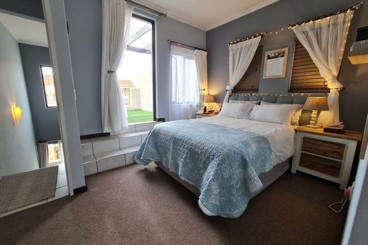 Upstairs, the light-filled bedroom boasts generous built-in cupboards and an en-suite bathroom with a sleek, modern shower.