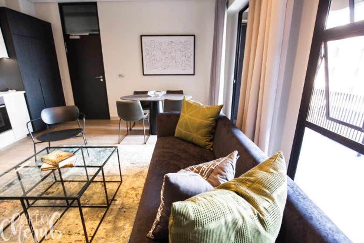 Effortless Sandton living with cafe culture and Gautrain convenience — modern open-plan apartment at The Lineal featuring a private balcony, air-conditioning, one bedroom, one bathroom and secure parking.