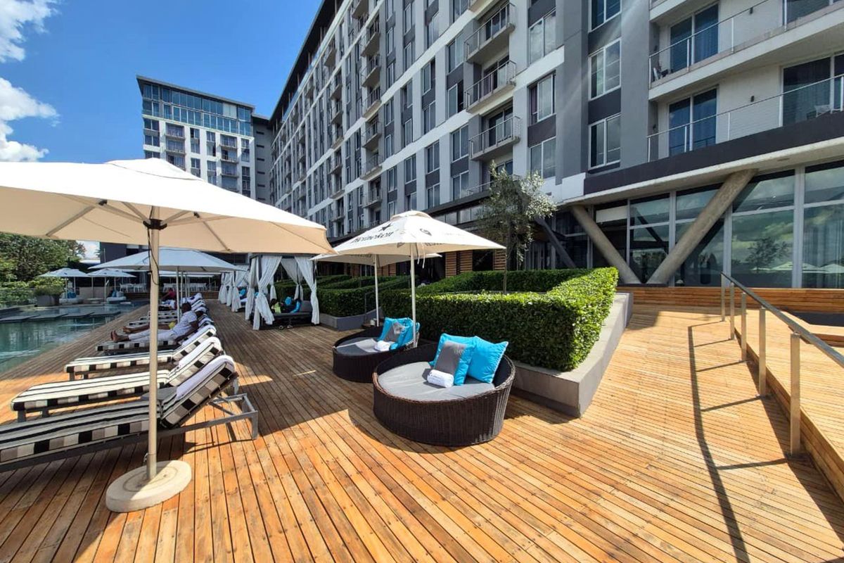 Executive living at The Capital on Park, Sandton — moments from the CBD and boutiques; fully furnished studio with rooftop pool views, gym, concierge, one bath and secure parking.
