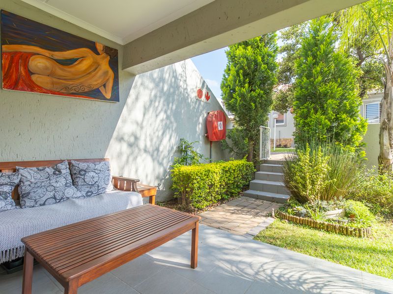 Lock-up-and-go urban living near the N1, Waterfall City and Sandton CBD; ground-floor apartment with covered patio and private garden, pet-friendly, one bedroom, en-suite plus guest toilet.