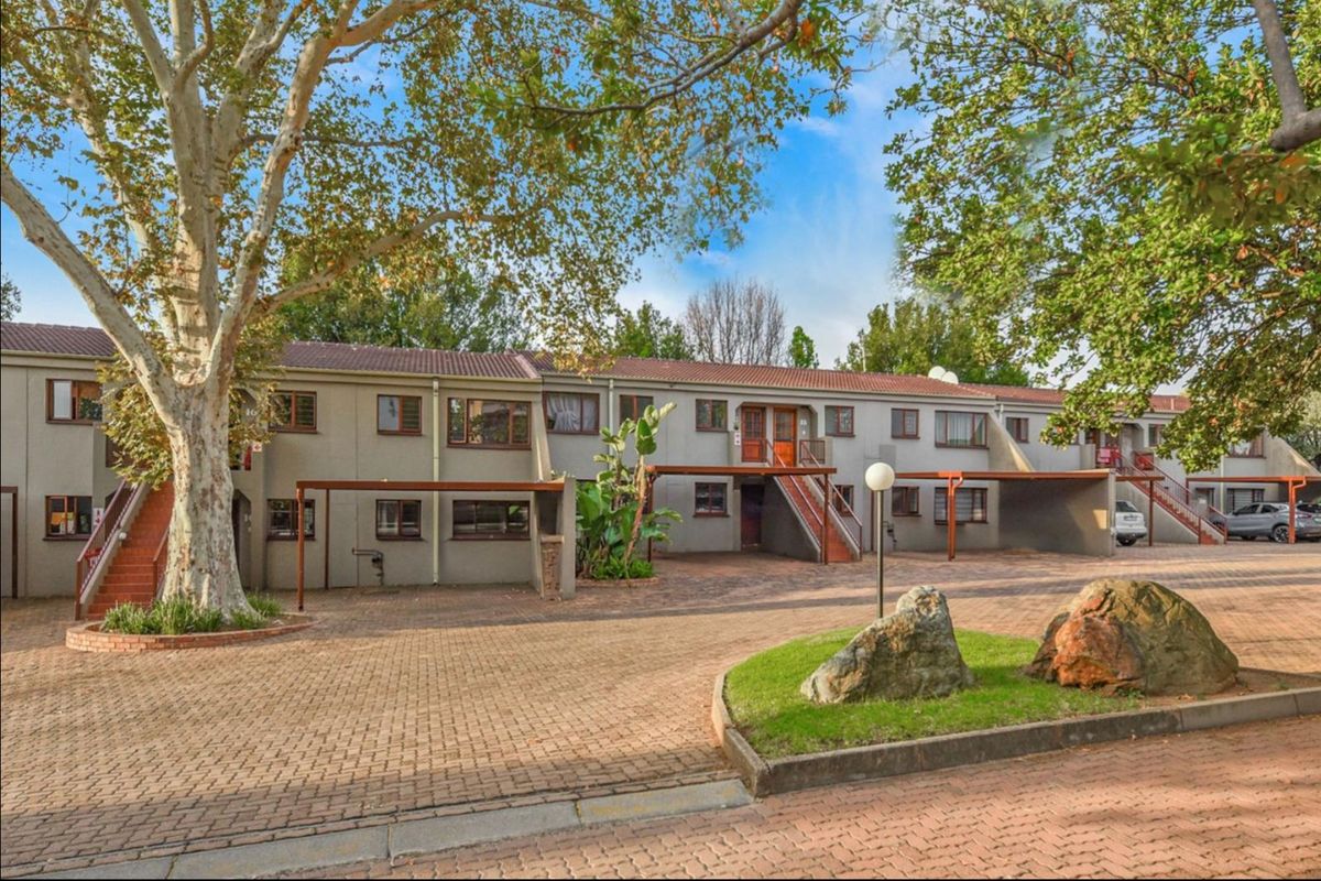 Offers 2 bedrooms, 2 bathrooms (main en-suite) plus a guest toilet. The complex includes a communal swimming pool and 24-hour security with access control, electric fencing, burglar bars, and security gates.