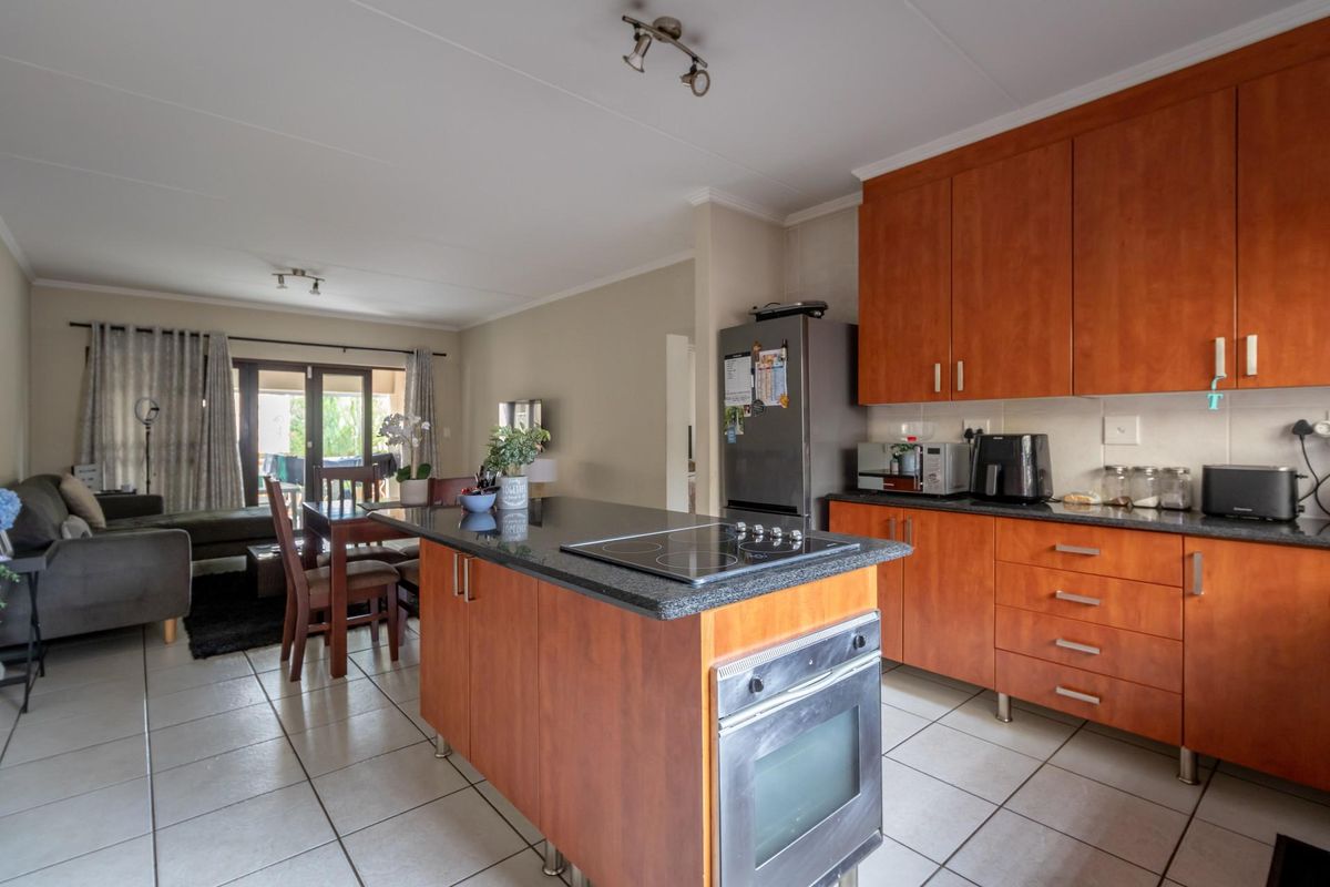 Effortless entertaining in Baldersani Estate: ground-floor corner unit with large patio and private garden, centre-island kitchen ideal for chefs, two bedrooms and one bathroom, steps from Simba Road amenities.