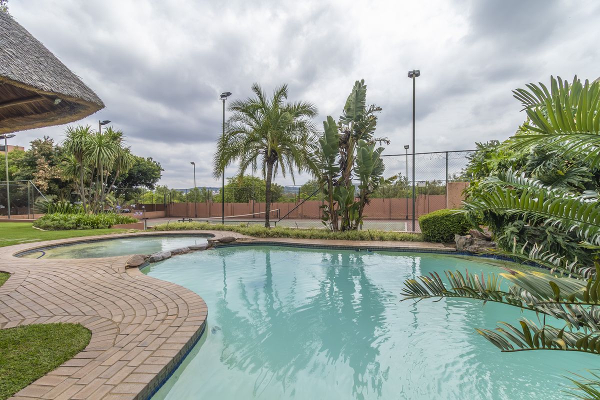 Secluded estate lifestyle in Serengeti Sands, Sunninghill, with an expansive upstairs terrace and versatile loft for entertaining — includes two bedrooms, two bathrooms and double covered parking.