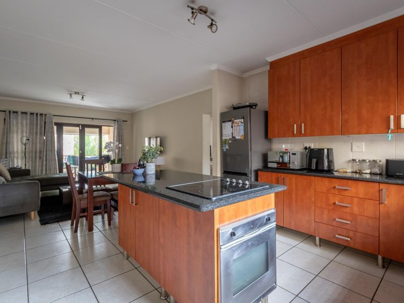 Effortless entertaining in Baldersani Estate: ground-floor corner unit with large patio and private garden, centre-island kitchen ideal for chefs, two bedrooms and one bathroom, steps from Simba Road amenities.