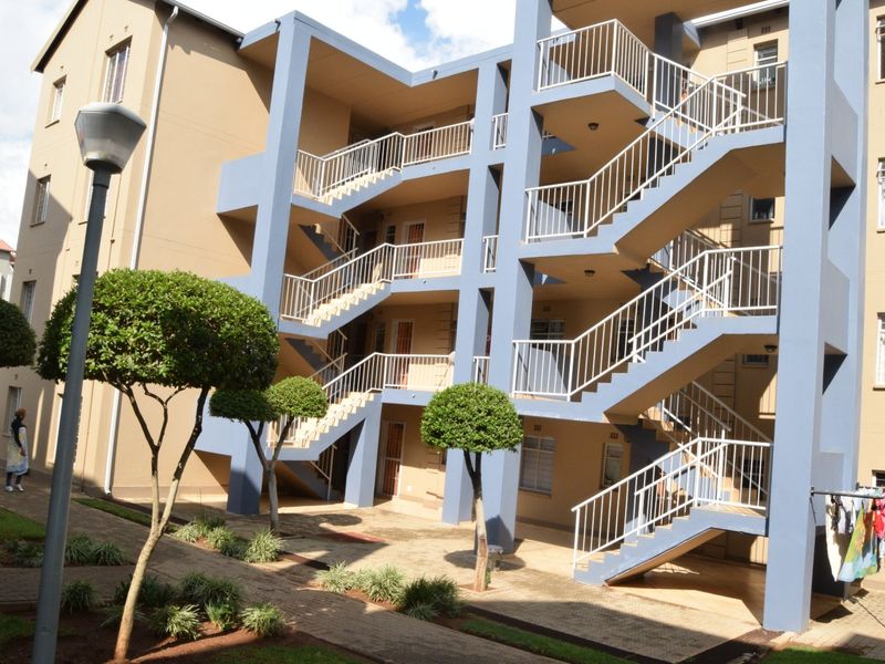 Centrally located in vibrant Jabulani, enjoy convenient city living near Jabulani Mall and Soweto Theatre, with 24-hour security, communal braai area, and two-bedroom, one-bath apartments.