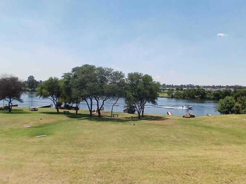 Riverfront living for warm summer evenings on a porch-deck overlooking the Vaal River, with private boathouse and river access. Fully furnished, two bedrooms, two bathrooms, garage.