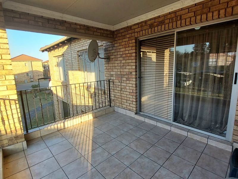 Entertain effortlessly on a balcony with built-in braai; open-plan kitchen/lounge with breakfast bar and microwave shelf. Two bedrooms, two bathrooms, covered carport, in a quiet neighbourhood.