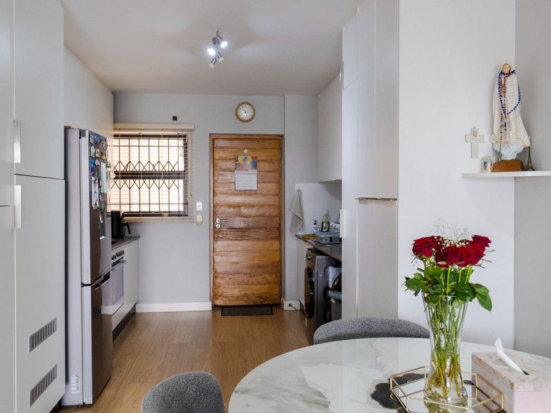 Single-level urban living near malls and restaurants in a prestigious block — private veranda, modern kitchen with Caesar top counters, communal pool and braai. Two beds, one bath, covered parking.