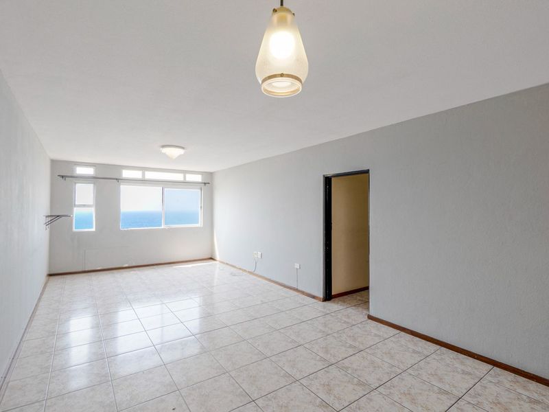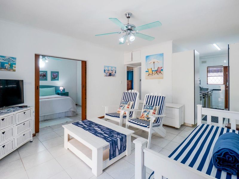 Seaside urban retreat in Amanzimtoti with effortless coastal living, fourth-floor sea views, communal pool and secure 24/7 access — modern one-bedroom with built-in cupboards and stove.