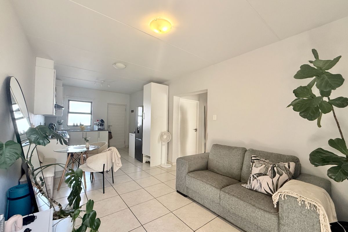 This neat two-bedroom, one-bathroom home offers an open-plan living area and an exclusive parking bay.