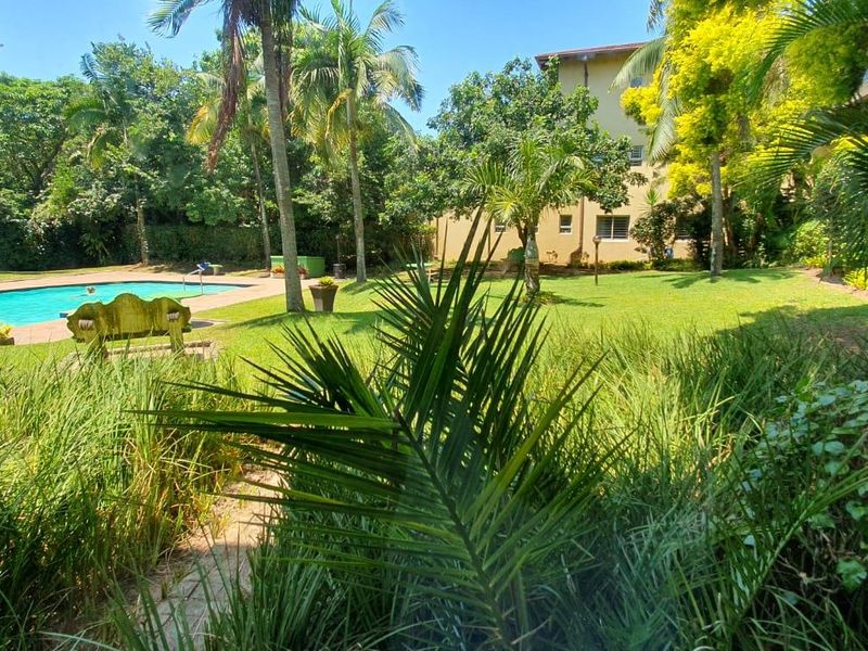 Smart investment near Ballito CBD and 20 minutes from King Shaka Airport — first-floor apartment with covered balcony overlooking the dam, pool and clubhouse; two bedrooms, one bathroom.
