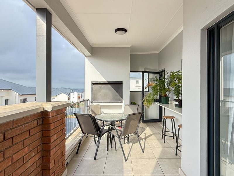 Resort-style estate living in Ballito Hills, minutes from beaches, schools and shops. Open-plan apartment with modern DEFY kitchen and private balcony with built-in braai; two beds, two baths.