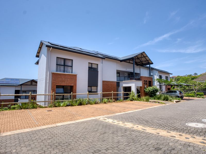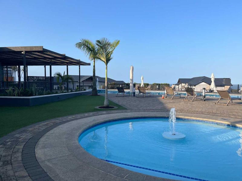 Resort style living in Ballito Groves Estate, minutes from Ballito CBD and Umhlali Country Club — first-floor apartment with open-plan living and communal pool, two bedrooms and one parking bay.