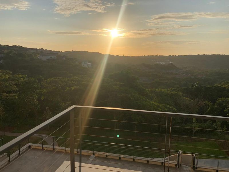 Coastal calm in Imbali Ridge with Seaward Coastal Forest views, open-plan living and a modern fitted kitchen opening to a private balcony. Two en‑suite bedrooms, two parking bays, infinity pool.