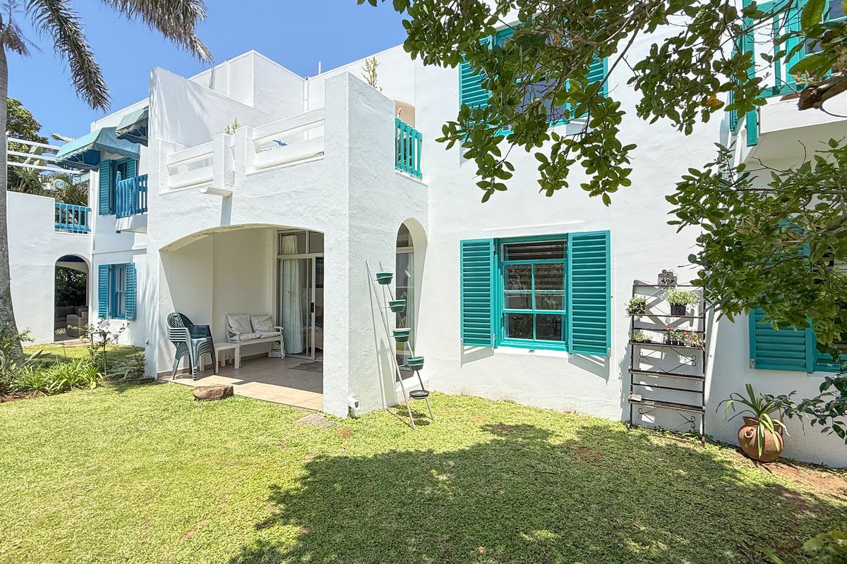 Perfectly positioned in the highly desirable Santorini Complex in Shakas Rock, this well located apartment offers an exceptional coastal lifestyle just moments away from Thompson's Bay renowned for its iconic Hole in the Wall. 75 meter tidal pool and safe lifeguarded swimming beach. This landmark area remains one of Ballito's most sought after addresses. The apartment features a practical and comfortable layout with 3 generously sized bedrooms and 2 bathrooms the main being en-suite. A standout feature of this home is its rare walk-in level access. One of 2 entrances allows you to enter the apartment without having to negotiate any stairs, making it ideal for easy living, young families of those looking for convenience and accessibility. Flowing from the living area is a private level garden offering a tranquil outdoor space perfect for relaxing, entertaining, or enjoying the coastal climate while listening to the sea. While the apartment does not have direct sea views, its unbeatable proximity to the ocean and surrounding natural beauty with walking trails, more than compensates allowing you to enjoy the best of seaside living just a short stroll away.