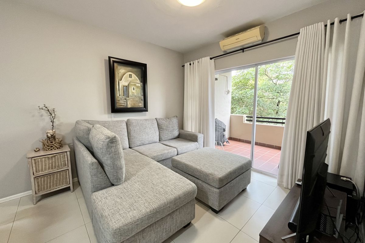 Coastal estate living in Sheffield Manor Estate—minutes to the beach, renovated kitchen opening to a private balcony, communal pool and 24-hour security; two bedrooms, one bathroom, two covered parking.