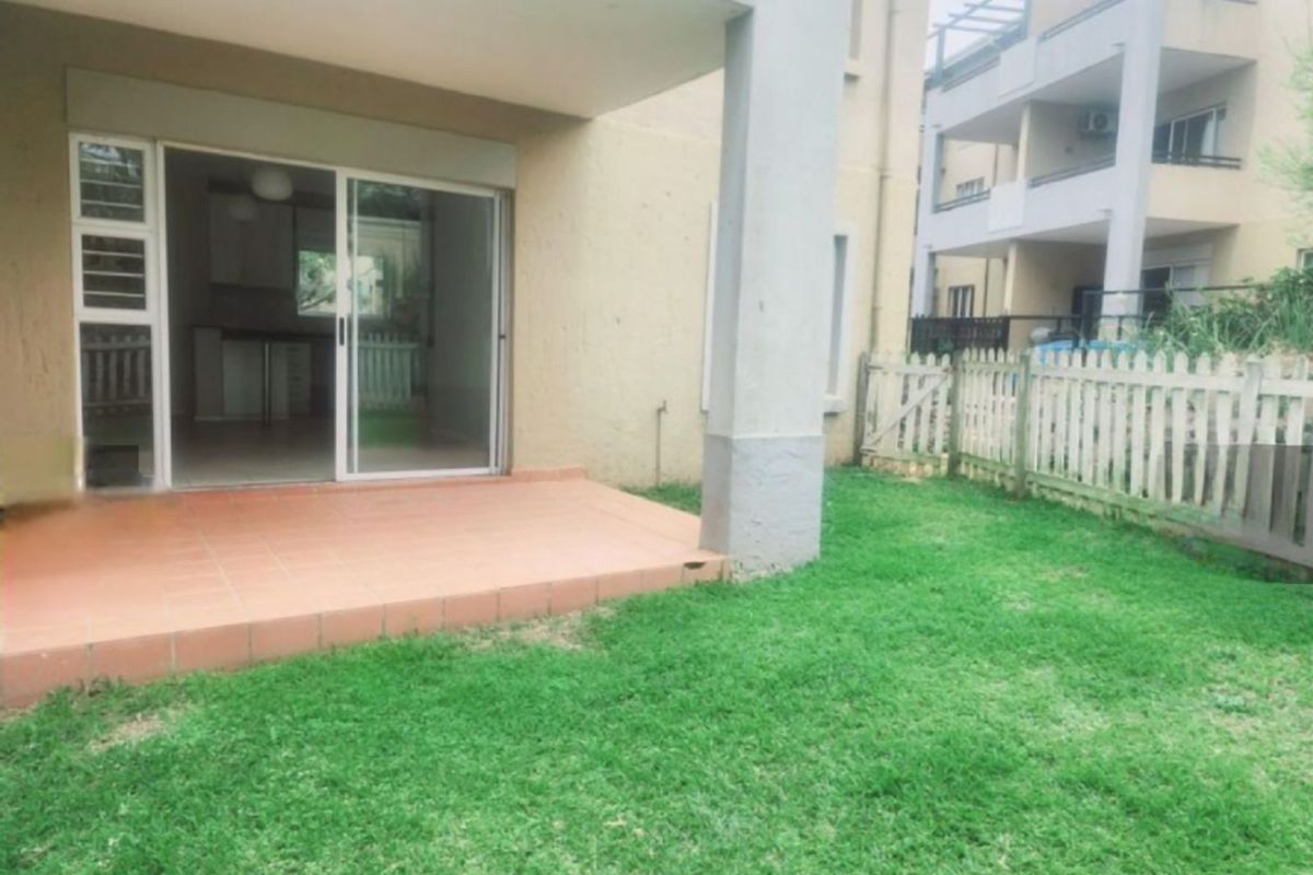 Year-round holiday living on Sheffield Beach, Dolphin Coast KZN, with a private patio and garden opening from spacious kitchen/living. One-bedroom en-suite; resort-style pool, clubhouse, catch-and-release dam.