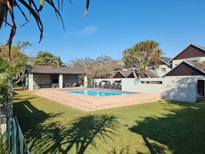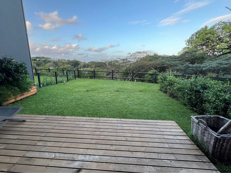 Enjoy relaxed Simbithi Verve living, secure complex just 20 minutes from King Shaka Airport — open-plan living flowing to a covered patio and private garden; three bedrooms, two bathrooms, single garage.