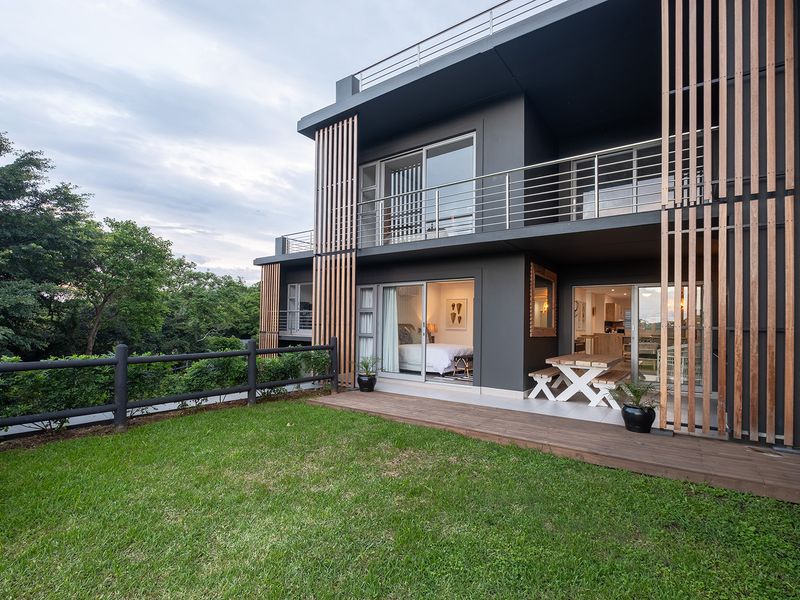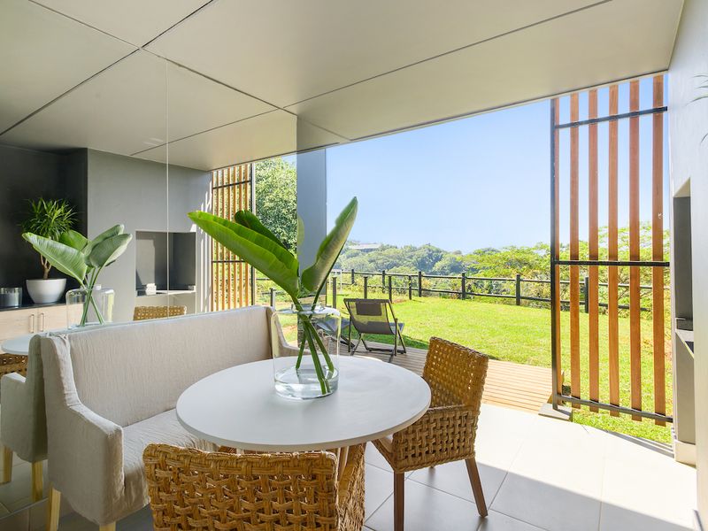 Enjoy eco-estate living in Simbithi Verve, Ballito — turnkey, fully furnished Airbnb with private garden and patio, two bedrooms, two baths and a lock-up garage.