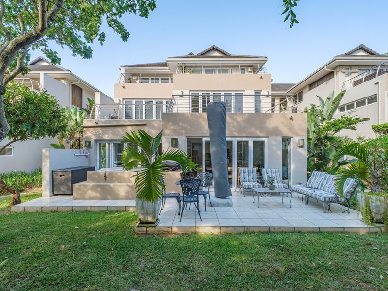 Relaxed coastal living with seamless indoor-outdoor flow in Simbithi Eco Estate, minutes from Ballito beaches and shops — private jacuzzi and decks with partial sea views; four bedrooms, three bathrooms.