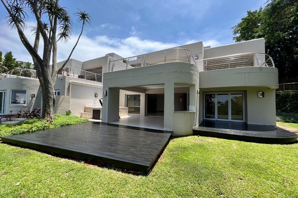 Relax on a large terrace with Jacuzzi and garden views in Simbithi — minutes from beaches and golf, with a pool, three bedrooms (one en‑suite) and two covered parking bays.