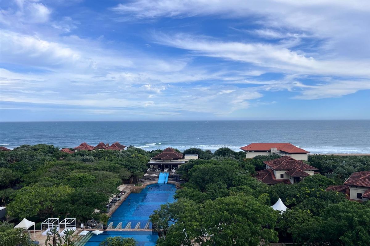 Resort-style coastal living with strong rental returns in Zimbali Coastal Resort, private balcony overlooking ocean and forest, modern open-plan kitchen and two en-suite bedrooms.