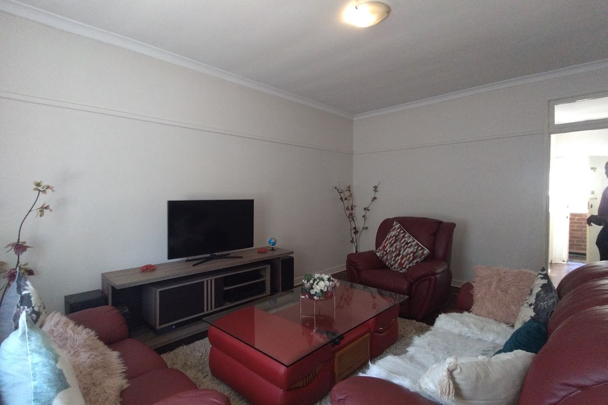 The bedroom is comfortably proportioned with ample cupboard space and enhanced by gleaming parquet floors that add warmth and character.