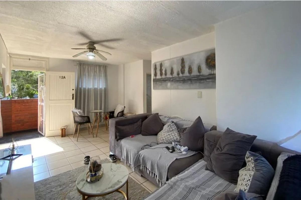 Comfortable urban retreat in Glenwood, Durban, close to cafes and parks, with sunlit living spaces, secure 24-hour guarded access and parking; includes two bedrooms and one bathroom.