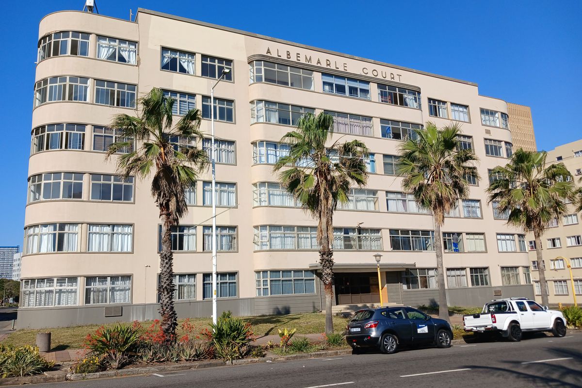 An easy walk to Durban's iconic Promenade from this also iconic Durban landmark - Albermarle Court - overlooking a palm tree lined avenue but situated a short distance away from the hustle vibrant and fun activities the beachfront offers.