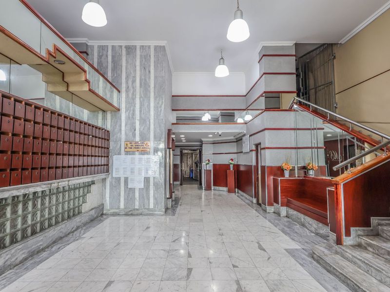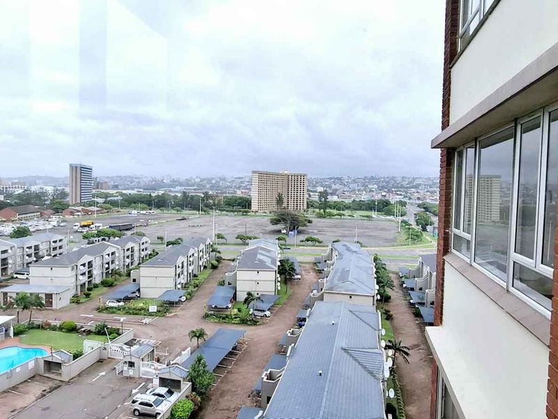 Enjoy central Durban living steps from Suncoast, Moses Mabhida and the beach — first-floor apartment with sweeping city views and a modern kitchen; two-bedroom, one-bath.